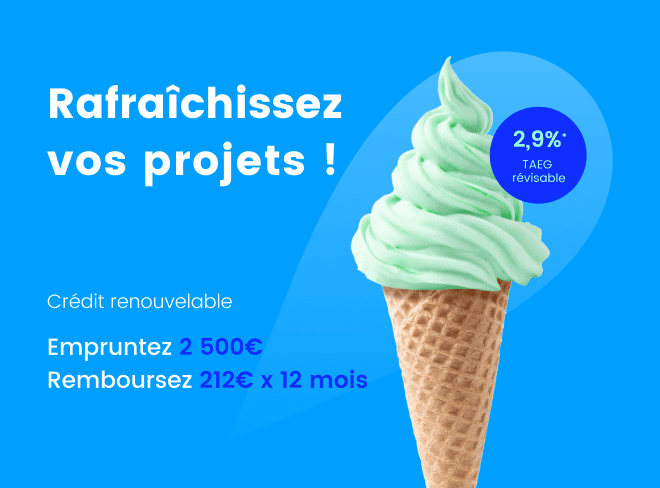 (1) Sous réserve d'acceptation de votre dossier par FLOA et après expiration du délai légal de rétractation. Conditions de taux en vigueur au 01/11/2023 et révisables.