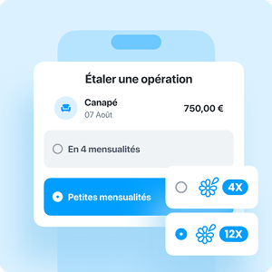 *Etalement des paiements : utilisation spéciale de votre crédit renouvelable à rembourser sur 4, 6, 12, 24 ou 36 mois. Plus d'infos ici.